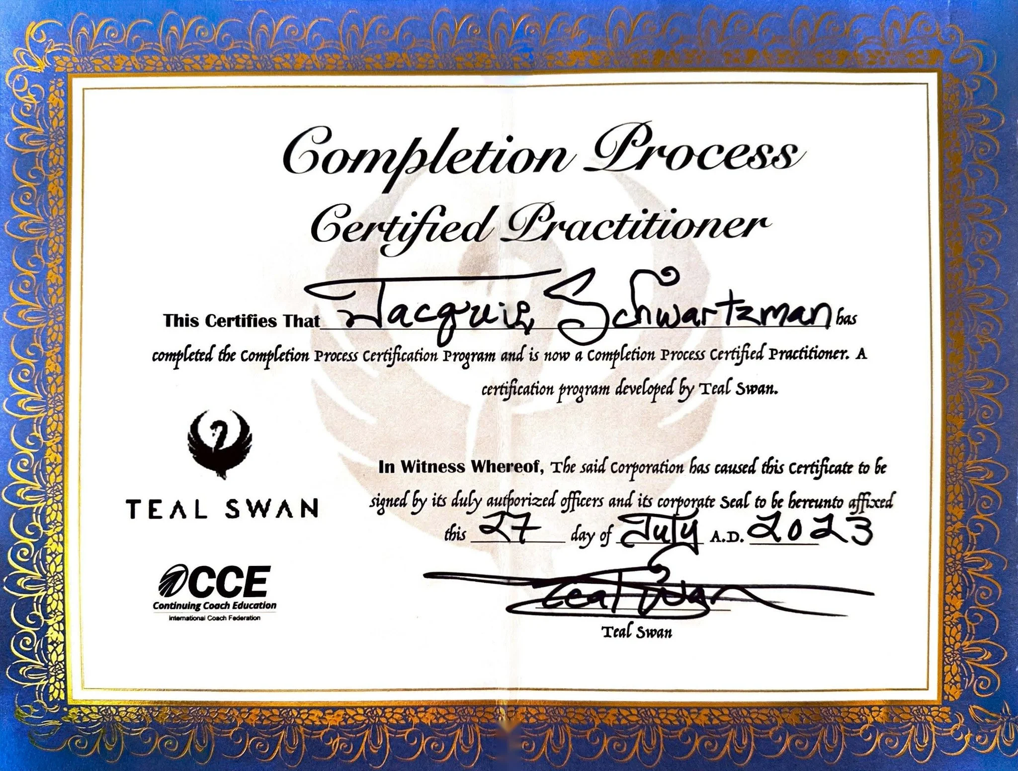 In 2023, Jacquie completed training directly with Teal Swan and became a Certified Practitioner of The Completion Process. She now weaves this work with her decades of trauma expertise and has uniquely adapted them both to the warm, buoyant medium of water.