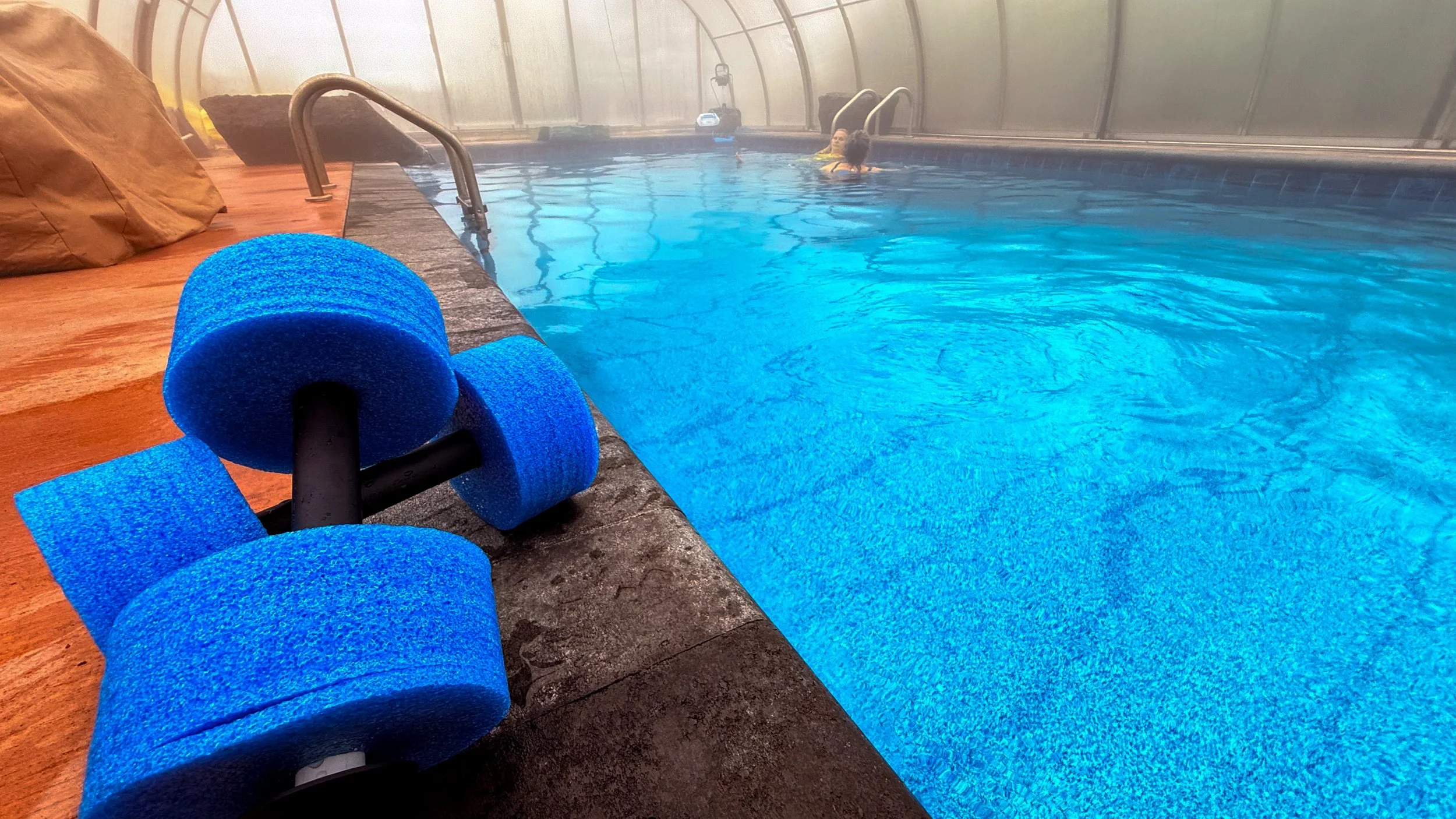 The covered, enclosed pool at Aeon Healing is intentionally small and intimate (groups of up to 5 women), creating a safe container where you can be fully yourself. No crowds, no performance … just pure presence and possibility.
